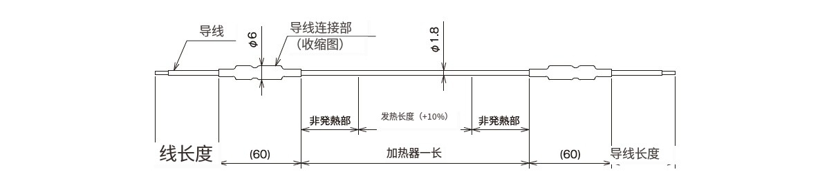 ● 非加热部分可以设置为任意长度。护套加热器的特点。