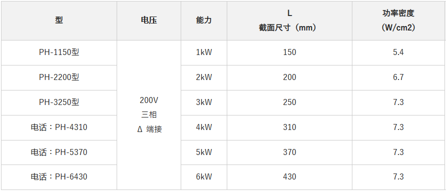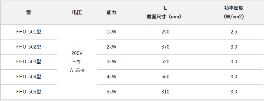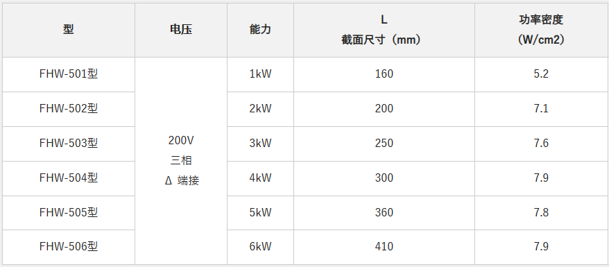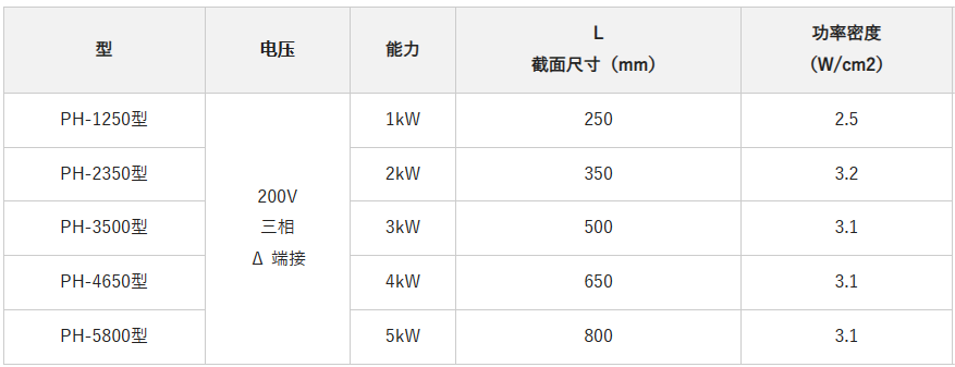 shinnetsu液体加热器的标准规格